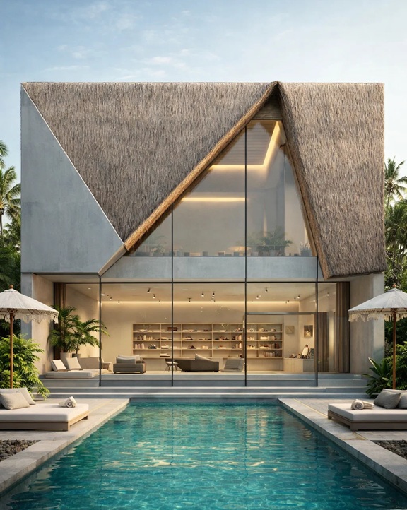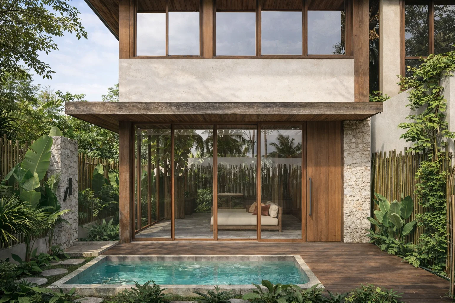 This villa blends modern minimalism with tropical warmth, creating a calm and refined living space.